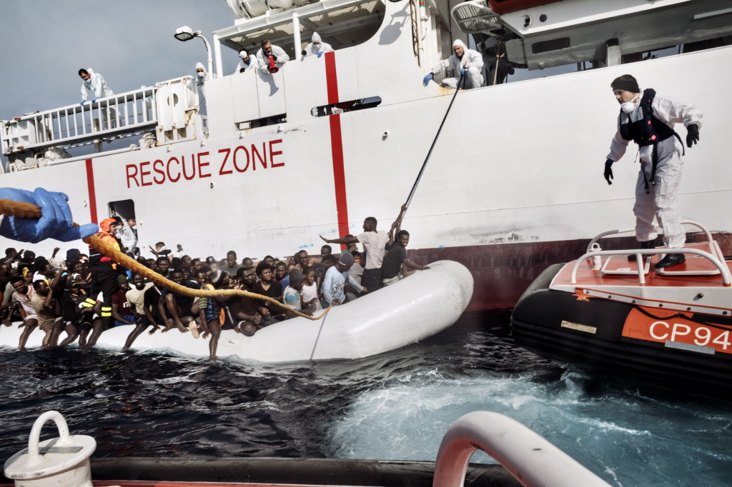 Nel terzo millennio ci sono ancora uomini, donne e bambini che si affidano alla provvidenza prima ancora della sorte, sopra una piccola imbarcazione, per attraversare il Mar Mediterraneo. La questione migratoria è prima di tutto una tragedia umanitaria. Nella narrazione mediatica di questa nuova Odissea, di stretta attualità visti i molteplici e quotidiani sbarchi dalle coste nordafricane, manca il più delle volte l’anima del racconto: lo svolgimento. Quali sono le vicissitudini, le angosce e le passioni profonde che muovono queste persone? Cosa accade in questo mare che ogni giorno si divora vite umane? E chi le riporta in superficie? Il reportage “The bravery comes from the seas” di Luca Catalano Gonzaga, unico fotografo al mondo ad avere la possibilità di salire a bordo di tutti i mezzi della Guardia Costiera Italiana (navi, elicotteri, aerei, motovedette), racconta in modo autentico la drammaticità di questo fenomeno migratorio che sposta interi popoli da una parte all’altra dell’emisfero, ma soprattutto mette in evidenza le diverse fasi di soccorso in mare: dall’avvistamento dell’imbarcazione in avaria, stipata spesso fino all’inverosimile, alla delicata fase di accostamento fino al salvataggio.