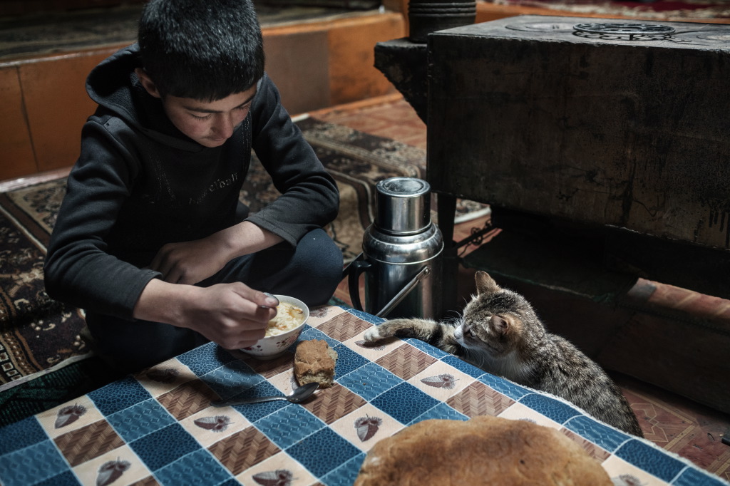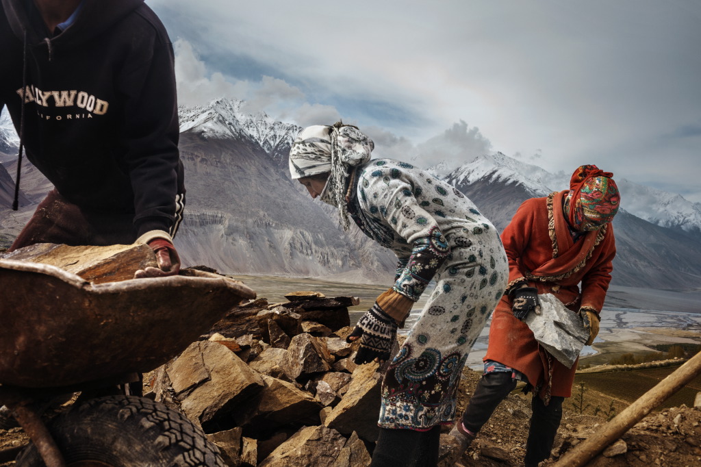 Torn between Russia and China, the Tajik population is at a crossroad in seek of future and development. Tajikistan is, in fact the poorest of the states, born out of the dissolution of the Soviet Union. Its’ economy struggles and the country is heavily affected by unemployment and poverty. A culture which was born inside Russia now moving towards the influence of China. Today, in fact all transportation of goods, from food to clothes to equipment is managed and brought from China. Many workers however still emigrate to Russia to find employment. The ancient Silk Route has become  a pathway for providing sustainment to the remote populations in the Pamirs. Nestled high up at unimaginable altitudes, the population resists and lives in basic conditions. Life is about farming the land to generate a small produce, herding sheep to provide meat and wool. The yak is an important part of their lives too, as it is well adapted to high altitudes  and provides a fundamental means of transportation, as well as for its meat and coat. The Pamir mountainous knot, forms the largest mountain range in Central Asia and the World. Known as “The Roof of the World” they are not only the highest region in Tajikistan but also one of the World’s highest regions, closely comparing to the heights of Tibet’s mountains. The Pamirs as such, refer to the range that extends from Tajikistan into Afghanistan and China. The border between Tajikistan and Afghanistan is a narrow strip of land that juts to then meet the China border. This land is part of what could be called the last corner of the world that has not been explored in depth.The slow industrial and technological revolution has forced the inhabitants to be totally immersed in this vast rural area, agricultural and mountainous, thus developing a consolidated identity of many strong tribal values ​​and a spiritual relationship, almost sacred, with the environment, where land and time become two essential elements. (Text by Muriel de Meo).